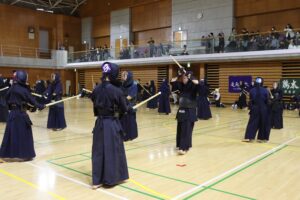 小中学生による団体戦で剣道基本技稽古法の演武試合及び防
