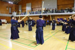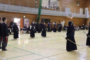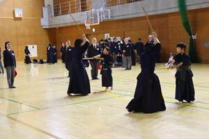 小中学生による団体戦で剣道基本技稽古法の演武試合及び防