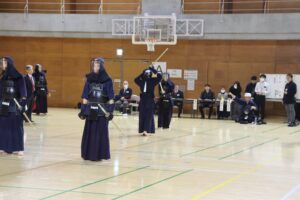 女子は参加人数が少数の為、他の道場(山崎剣友会様)と混合で行いました。