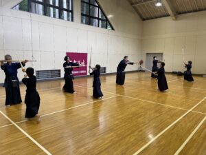 今年は天気は曇り空のおかげで気温も26度と過ごしやすかったです。稽古中も扇風機等で